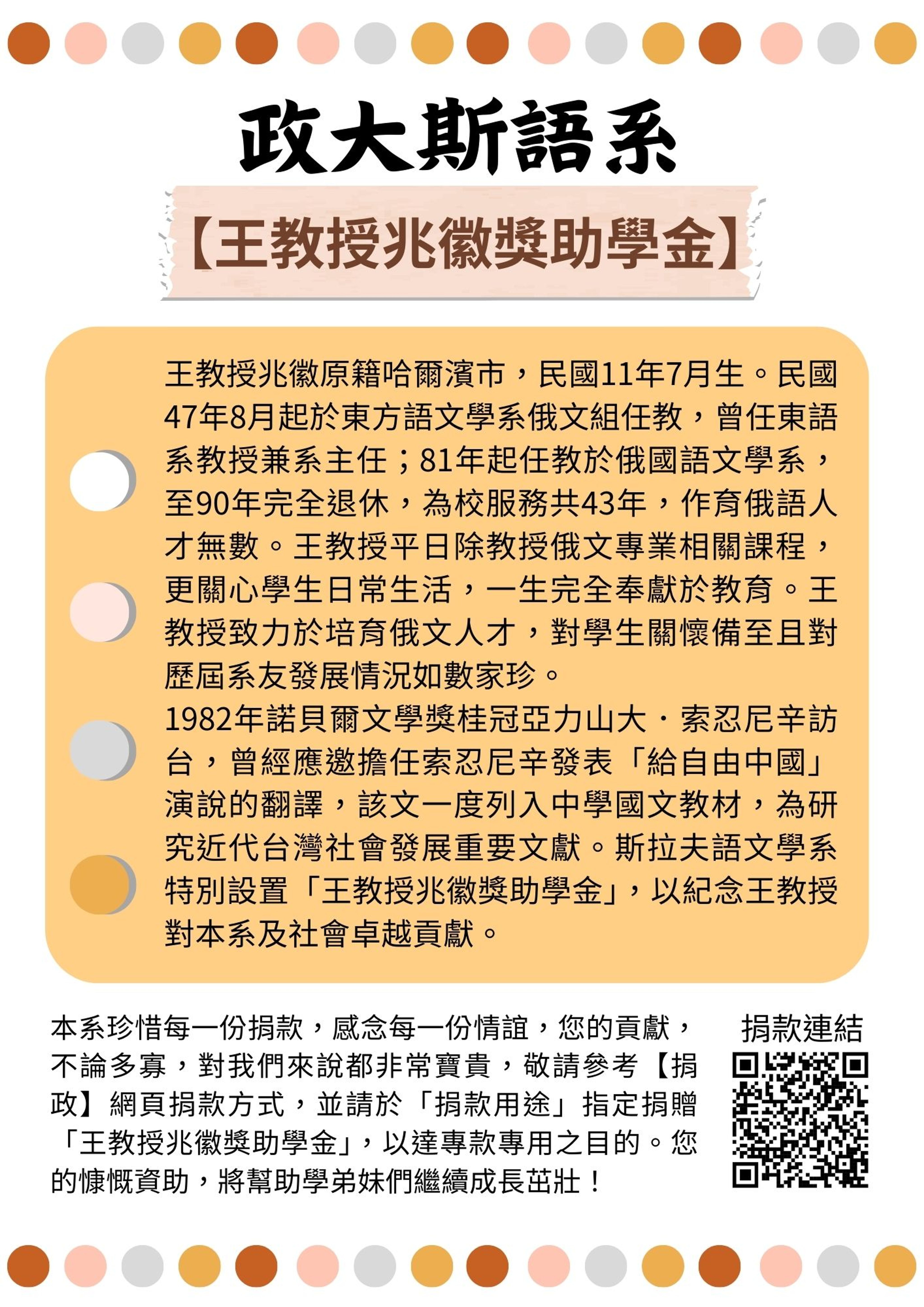 斯語系王教授兆徽獎助學金